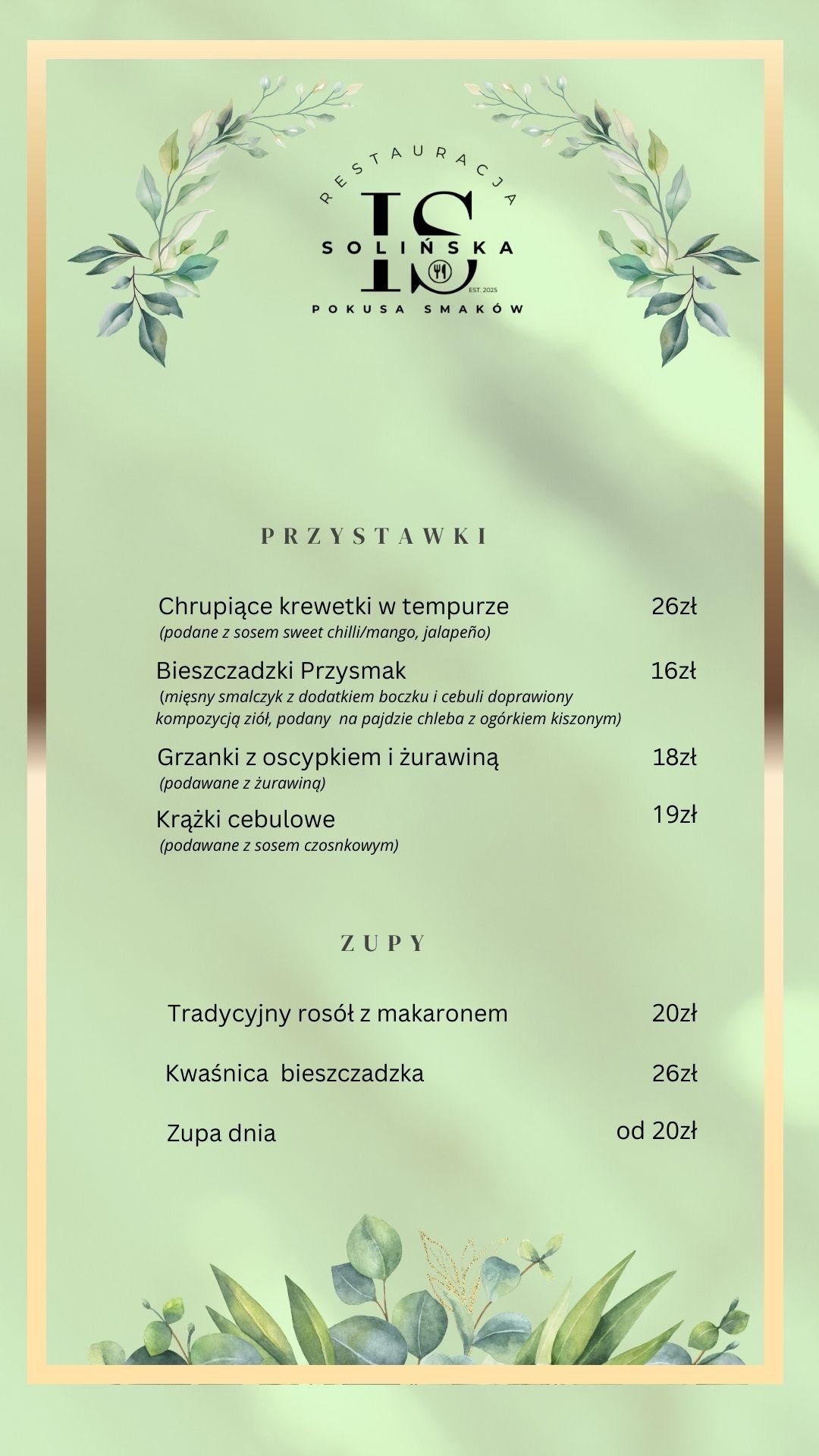 Restauracja Solińska to nowo otwarte miejsce dla miłośników tradycyjnej kuchni, gdzie smak i jakość idą w parze. Specjalizujemy się w starannie przygotowanych daniach mięsnych i rybnych, bazujących na świeżych, lokalnych składnikach. Nasze menu to połączenie klasycznych receptur z nowoczesnym podejściem do gotowania, co gwarantuje niezapomniane doznania kulinarne. Przytulne wnętrze, ciepła atmosfera i profesjonalna obsługa sprawiają, że każdy posiłek staje się wyjątkowym przeżyciem. Restauracja Solińska to idealne miejsce na rodzinny obiad, romantyczną kolację czy spotkanie z przyjaciółmi w sercu malowniczych Bieszczad. Zapraszamy do odkrywania autentycznych smaków!